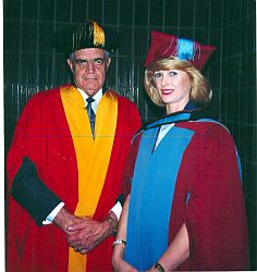 Dr Lemmer verskyn saam met prof Landman tydens haar gradeplegtigheid