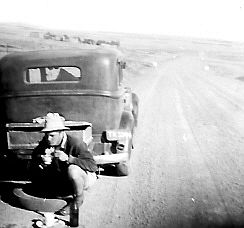 Net duskant Bloemfontein sien ons 'n hoewe (plot) wat veral weens die naderende skemerte aantreklik lyk. Ons stop voor die plaashuis en stel onsself bekend aan die Oom en Tante en vra toestemming om op te werf te oornag. Die Oom is lus om politiek te gesels en gou is ons skoon genoeg om by die tafel aan te sit vir 'n heerlike ete wat die Tante met veel sorg voorberei het. Nadat ons land en sand politiek gepraat het, en oor alles met mekaar saamgestem het, bevind ons onsself in 'n reuse verebed. Na 'n besonder goeie nagrus en 'n heerlike ontbyt, is ons gereed om die pad te vat. Die Dodge weier egter om 'n voetjie te versit. Die probleem is gou opgelos toe die Oom sy perdekar voor aan die Dodge haak en hom aan die brand te trek.