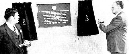 Terwyl prof H O Maree, Voorsitter van die TO., toekyk, onthul