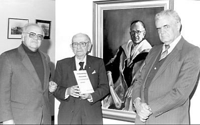 Prof Willem Landman (middel) se boekery is 'n kosbare erfenis vir UP.