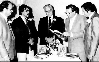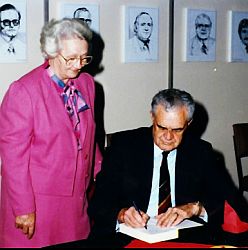 prof Landman een van die boeke onderteken